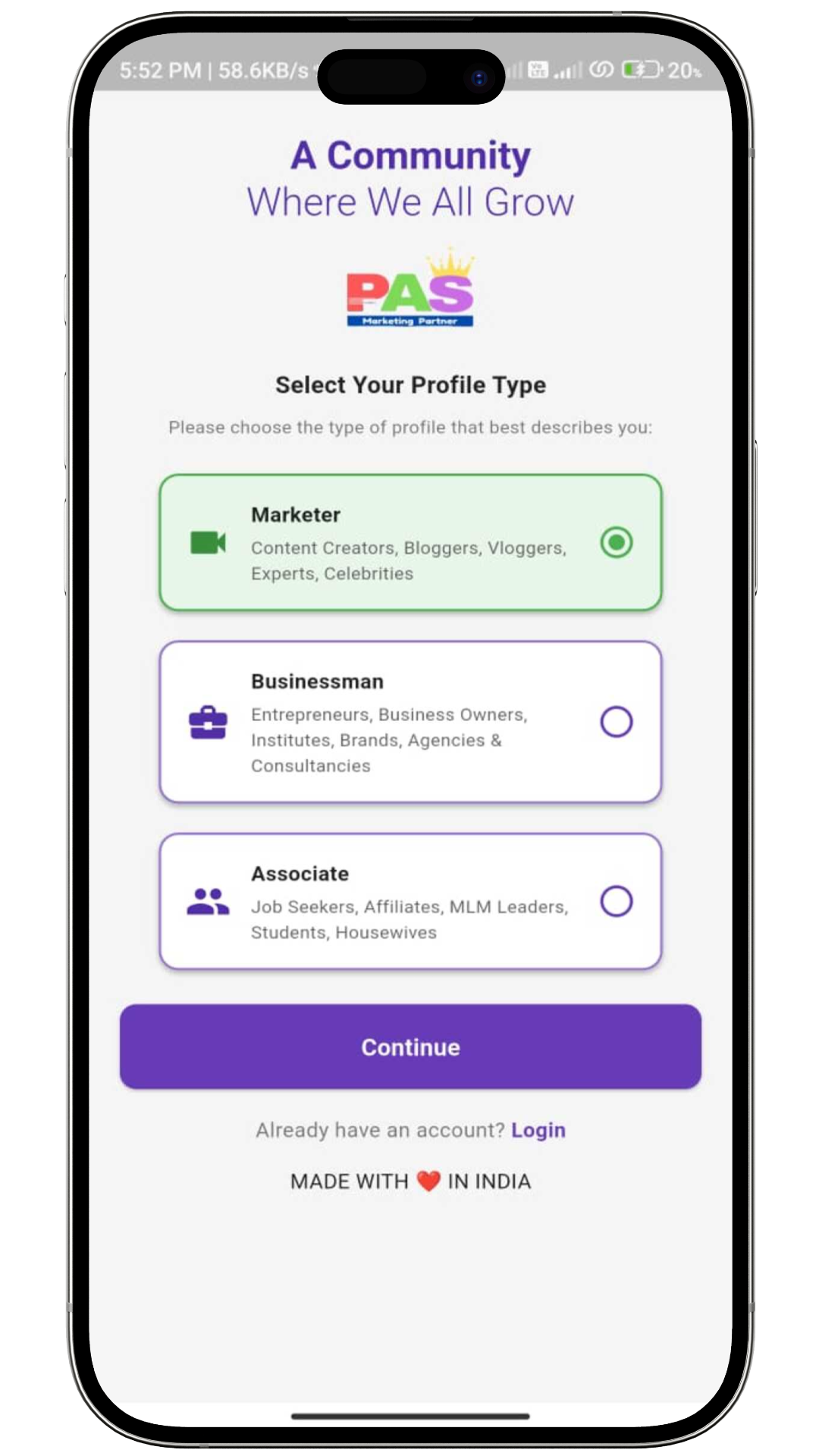Marketers, brands, influencers, and associates can grow together by inviting others to join the PAS Community Platform. Expand your network and increase your impact — while earning rewards for every successful referral.